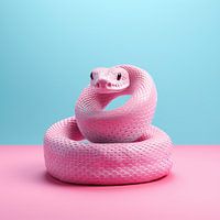 Een roze slang op een blauwe achtergrond, uitgevoerd in de stijl van hyperrealistische sculpturen, met minimale retouchering. Dit hedendaagse kunstwerk heeft een suikergoedachtige uitstraling in de vorm van een donut. Het maakt gebruik van een monochromatisch kleurenschema en creëert een optische illusie.