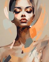 Modern portret met de titel "Sweet embrace". Dit portret is geïnspireerd op de flexa kleur van 2024. Een zachte kleur die mooi combineert met de kleurtinten die in dit werk gebruikt zijn.