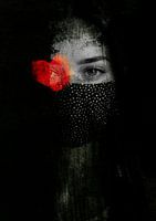 Bewerkte afbeelding. Een vrouw in zwart wit . Het hart symboliseert liefde. Liefde die zij ontbeert of juist gevonden heeft.