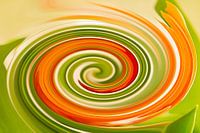 Deze swirl is ontstaan door een foto van een oranje tulp. Een tulpenblaadje en het blad zijn nog een beetje herkenbaar.