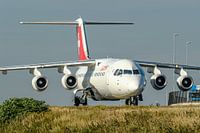Een Swiss British Aerospace Avro RJ100 is aangekomen op luchthaven Schiphol.