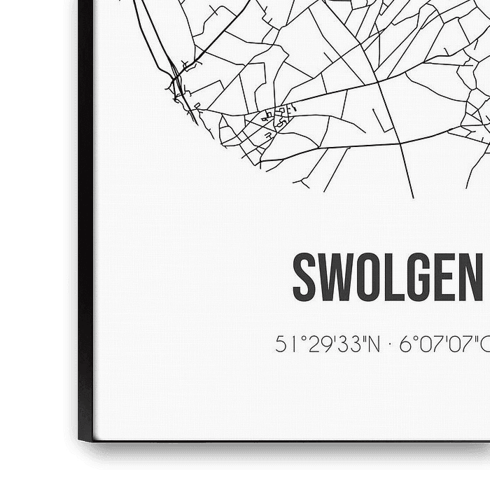Zwart-witte landkaart, stratenplan of plattegrond van Swolgen. Swolgen is gelegen in de gemeente Horst aan de Maas, provincie Limburg. Op de stadskaart zijn alle openbare wegen in Swolgen opgenomen. Verder is de kaart voorzien van de coördinaten van het centrum van Swolgen.