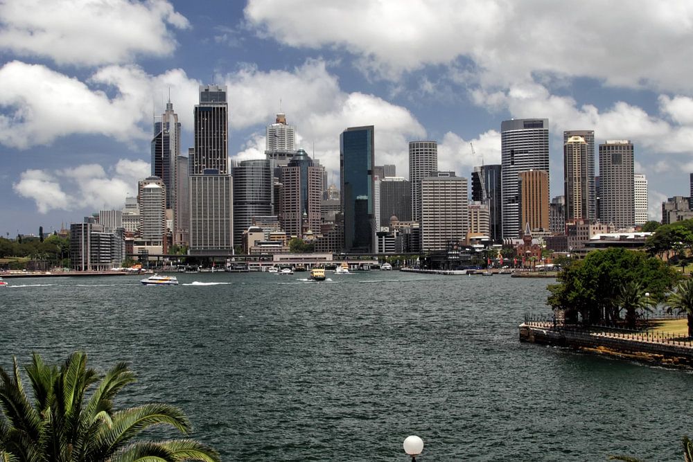 Uitzicht op de skyline van Sydney, de Sydney Harbour Bridge en het Sydney Opera House vanuit de noordelijke wijk Kirribilli