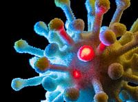 Symbolisch virus close-up met effectlicht in donkere omgeving
