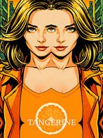 En natuurlijk deze speciale dame met 3 ogen, 2 neuzen en 2 monden. En gekleed in de kleur tangerine.