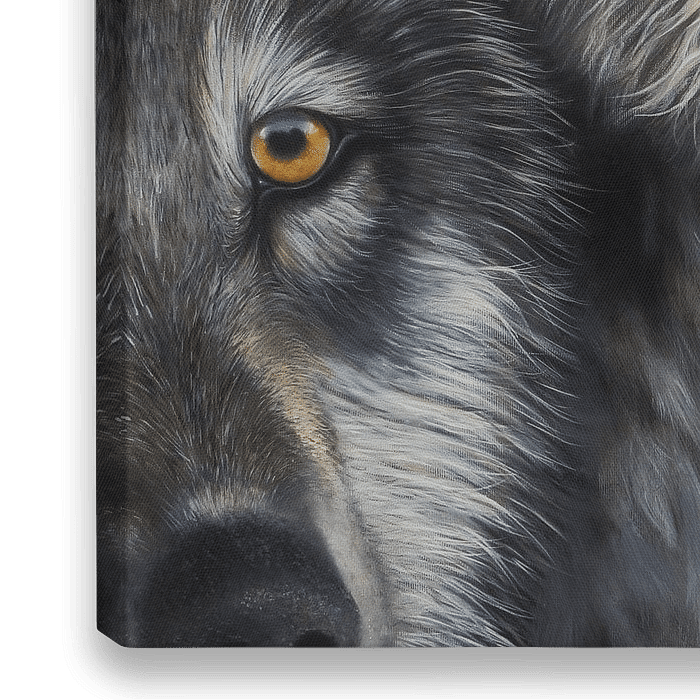 Grijze wolven in wintervacht, olieverf op canvas