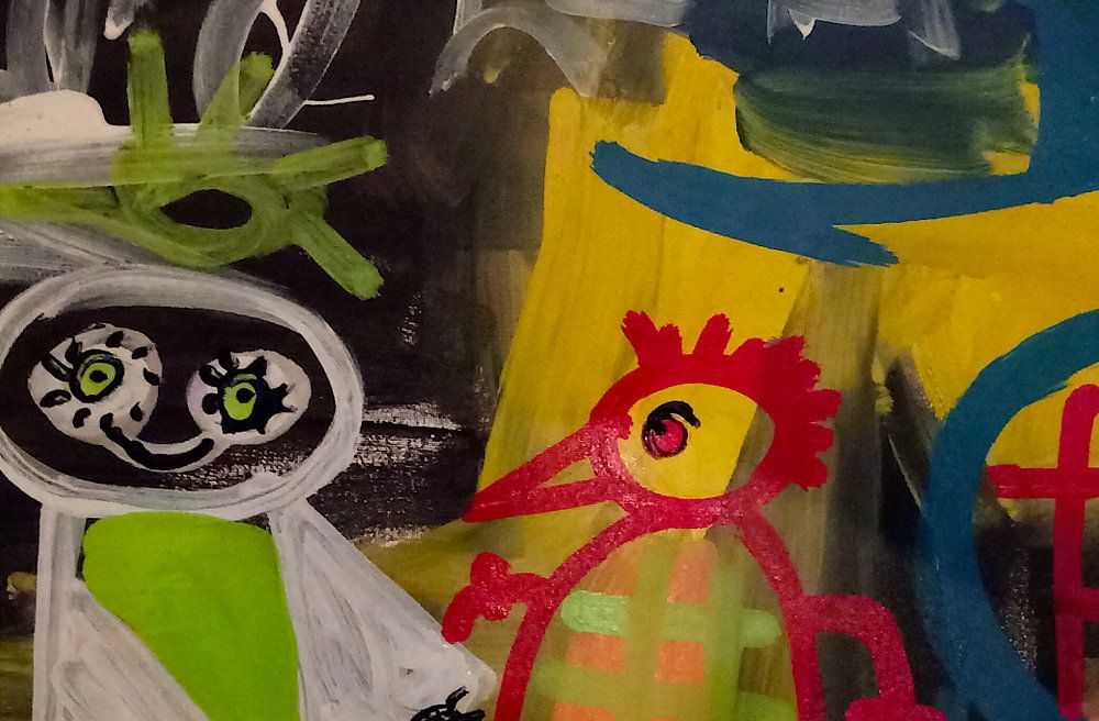 Een afbeelding heb ik helaas nog niet, omdat ik het doek cadeau gegeven heb. Ik heb inmiddels wel gevraagd aan de ontvanger om een foto ervan te sturen.