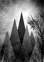 Moderne gemengde technieken: vectorafbeeldingen (driehoeken), Tekeningen - schilderen (bomen, landschap, achtergronden).