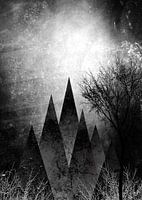 Moderne gemengde technieken: vectorafbeeldingen (driehoeken), Tekeningen - schilderen (bomen, landschap, achtergronden).
