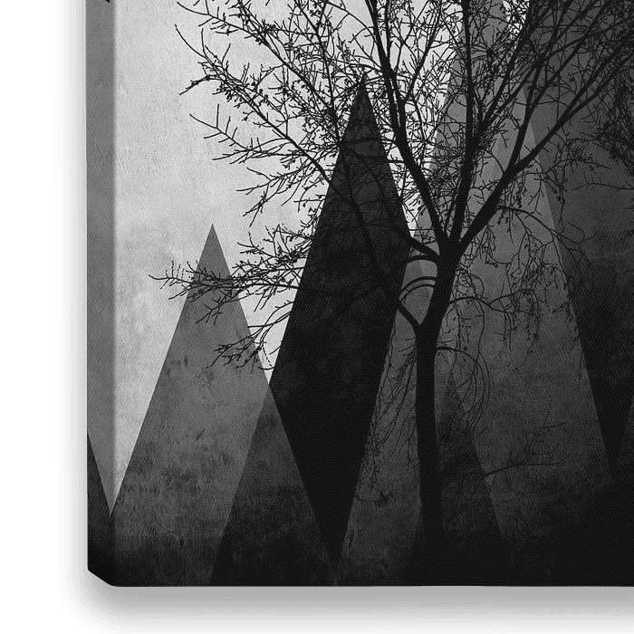 Moderne gemengde technieken: vectorafbeeldingen (driehoeken), Tekeningen - schilderen (bomen, landschap, achtergronden).