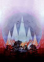 Moderne gemengde technieken: vectorafbeeldingen (driehoeken), Tekeningen - schilderen (bomen, landschap, achtergronden).