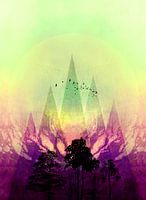 Moderne gemengde technieken: vectorafbeeldingen (driehoeken), Tekeningen - schilderen (bomen, landschap, achtergronden).