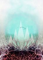 Moderne gemengde technieken: vectorafbeeldingen (driehoeken), Tekeningen - schilderen (bomen, landschap, achtergronden).