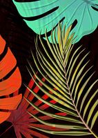 Kleurrijke Palm Bladeren op zwarte achtergrond. Vector en gemengde techniek. ©5-2017 door Pia Schneider, atelier COLOUR-VISION.