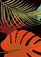 Colorful Palm Leaves on black background.Vector & Mixed Media. ©5-2017 by Pia Schneider, atelier COLOUR-VISION.