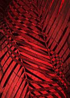 Ongewoon tropisch bladmotief met verschillende trendkleuren Pantone Vialant Poppy. Copyright ©9-2018 door Pia Schneider, atelier COLOUR-VISION. Alle rechten voorbehouden.