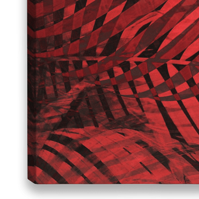 Ongewoon tropisch bladmotief met verschillende trendkleuren Pantone Vialant Poppy. Copyright ©9-2018 door Pia Schneider, atelier COLOUR-VISION. Alle rechten voorbehouden.