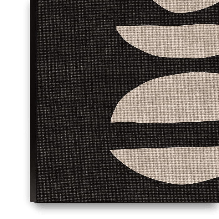 Abstract kunstwerk in zwart en beige tint. Abstracte vormen die perfect passen bij een modern, Scandinavisch of minimalistisch interieur. Het werk is een digitale illustratie. Montage op een modern, glad materiaal zoals Dibond of staal. Acrylglas geeft het werk diepte. De illustratie ziet er ook goed uit op canvas of als poster.