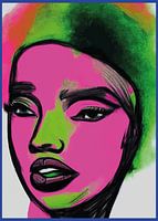 Abstract kunstwerk van een vrouw met vele kleuren.