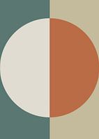 Abstract kunstwerk in de trendy kleuren TERRA en turquoise. Abstracte vormen die perfect passen in een modern, Scandinavisch of minimalistisch interieur. Het werk is een digitale illustratie. Montage op een modern, glad materiaal zoals Dibond of staal. Acrylglas geeft het werk diepte. De illustratie komt ook goed tot zijn recht op canvas of als poster.