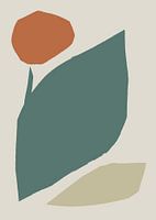 Abstract kunstwerk in de trendy kleuren TERRA en turquoise. Abstracte vormen die perfect passen in een modern, Scandinavisch of minimalistisch interieur. Het werk is een digitale illustratie. Montage op een modern, glad materiaal zoals Dibond of staal. Acrylglas geeft het werk diepte. De illustratie komt ook goed tot zijn recht op canvas of als poster.