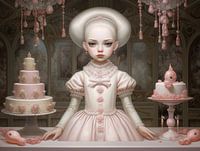 Dit digitale kunstwerk in popsurealistische lowbrow art stijl is een visueel feest van gedempte pasteltinten en surrealistische elementen. Het centrale thema is de samensmelting van absurde dromen, een classy onderwerp en de natuurlijke wereld, waarbij de grenzen tussen beide vervagen.