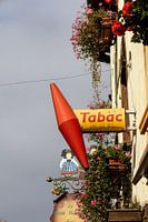 Tabac, uithangbord in Eguisheim in Frankrijk. Af en toe kom je ze nog tegen de pareltjes uit de relamewereld. Zoals hier in Frankrijk.