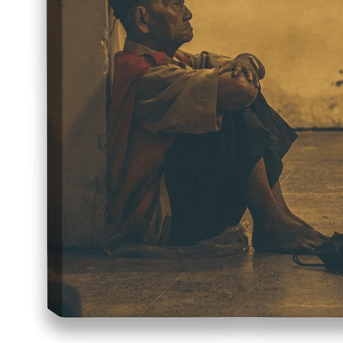 Deze oude man, woont en werkt in de straten van JogYakarta, Indonesie. Voor hem ligt een berg tabak, klaar om verkocht te worden. Zijn blik straalt geduld en vastberadenheid uit. Hij wacht op nieuwe klanten. Een Moment van stilte in een wereld die nooit stopt.