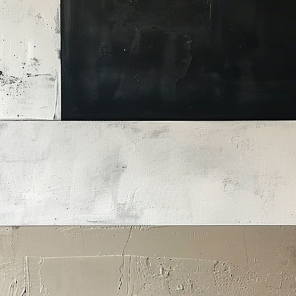 Details: modern schilderij, abstracte kunst, geometrische vlakken, textuur verschil, subtiele details, monochroom, zwart-wit