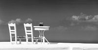 Traditionele Griekse Cycladen-architectuurstijl in Imerovigli, een klein stadje tussen Fira en Oia op Santorini, een van de Cycladen-eilanden in de Egeïsche Zee, Griekenland.