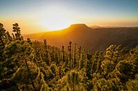 De tafelberg van La Gomera kun je enkel goed zien als je in de toppen van de bomen een plaatsje zoekt.