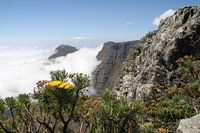 De top van de Tafelberg in Kaapstad met het tafelkleed op de achtergrond