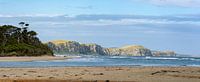 Tahakopa Bay in Papatowai, Nieuw Zeeland. De Tahakopa rivier mond hier uit op de Zuidelijke Stille Oceaan.