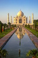 de witmarmeren Taj Mahal in Agra werd gebouwd in de 17e eeuw als graftombe door Mogul vorst Shah Jahan als eerbetoon aan zijn jong gestorven vrouw Mumtaz in de 17e eeuw