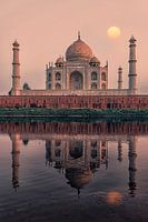 Koop de foto Taj zonsondergang van Manjik Pictures op canvas, aluminium dibond, (ingelijste) fotoprint, behang en ArtFrame, op maat geprint in Fine-Art kwaliteit.