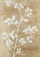Tak Bladeren | Witte Bladeren - Op dit schilderij zie je een tak met bladeren op een zachte, beige achtergrond, waardoor de witte bladeren mooi uitkomen en het schilderij een rustige en moderne uitstraling heeft.