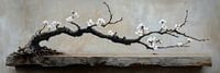 In een knus hoekje van een oude kamer prijkt een uniek kunstwerk. Het toont een houten tafel met daarop een elegante bonsai. De boom heeft een tak vol delicate amandelbloesems die lijken te dansen in het zachte licht. Het panorama in de achtergrond laat een tijdloos landschap zien, alsof het een verhaal vertelt van vervlogen dagen. Het hout van de tafel draagt de sporen van vele jaren, wat een gevoel van geschiedenis en karakter toevoegt. Deze foto vangt de schoonheid van eenvoud en de kracht van natuur in een rustgevend stilleven, perfect voor elke ruimte die warmte en sfeer wil uitstralen.
