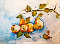 Abstracte offerte, tak met rijpe peren, sfeerbeeld voor de eetkamer