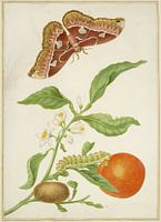 Tak van Sevilla Orange met Rothschildia Moth, Maria Sibylla Merian (1703)