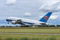 Opstijgen van een Airbus A380 van China Southern Airlines vanaf de Polderbaan. Het is indrukwekkend om zo'n groot toestel te zien opstijgen of landen.
