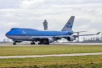 Koop de foto Take-off KLM Boeing 747-400M. van Jaap van den Berg als print op canvas, aluminium dibond, (ingelijste) fotoprint, behang en ArtFrame. Voor jou op maat geprint in Fine-Art kwaliteit.