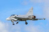 Take-off Saab JAS39 Gripen van de Zweedse Luchtmacht.