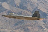 Take-off van een U.S. Air Force F-22 Raptor tijdens de Aviation Nation Airshow op Nellis AFB op 12 november 2016.