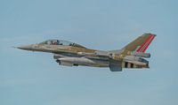 Take-off van een Noorse F-16BM Fighting Falcon.