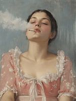 Taking a Break, portret van een jonge vrouw met sigaret, Renaissance stijl. Een bijzondere blikvanger voor je interieur! Kies zelf het formaat en materiaal bij dit werk en maak het helemaal naar wens.