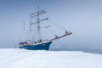 Tall Ship Barquentine Antigua in de wateren rondom Spitsbergen. Deze driemaster vaart in de zomermaanden rondom Spitsbergen. Maar ook langs ijs dat van gletsjers afkomt vaart