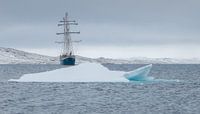 Tall Ship Barquentine Antigua in de wateren rondom Spitsbergen. Deze driemaster vaart in de zomermaanden rondom Spitsbergen. Maar ook langs ijs dat van gletsjers afkomt vaart