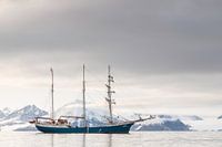 Tall Ship Barquentine Antigua in de wateren rondom Spitsbergen. Deze driemaster vaart in de zomermaanden rondom Spitsbergen. Maar ook langs ijs dat van gletsjers afkomt vaart