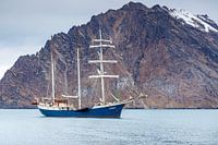 Tall Ship Barquentine Antigua in de wateren rondom Spitsbergen. Deze driemaster vaart in de zomermaanden rondom Spitsbergen. Maar ook langs ijs dat van gletsjers afkomt vaart