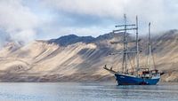 Tall Ship Barquentine Antigua in de wateren rondom Spitsbergen. Deze driemaster vaart in de zomermaanden rondom Spitsbergen. Maar ook langs ijs dat van gletsjers afkomt vaart